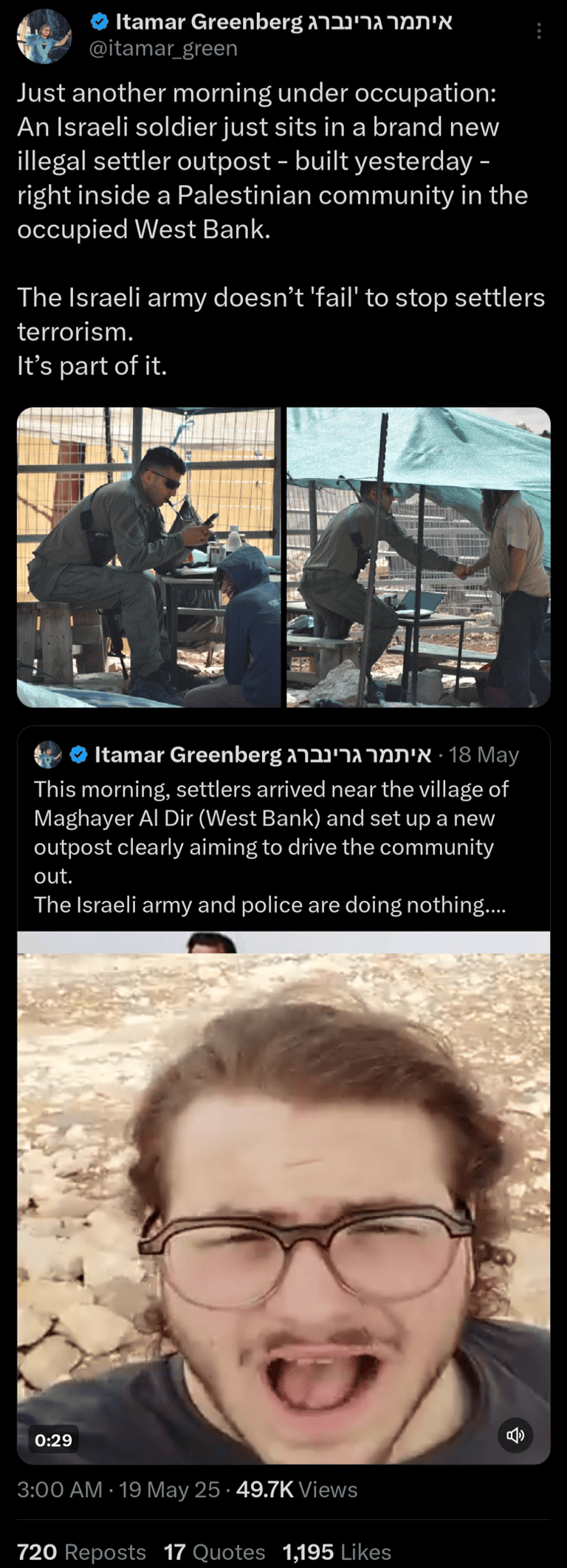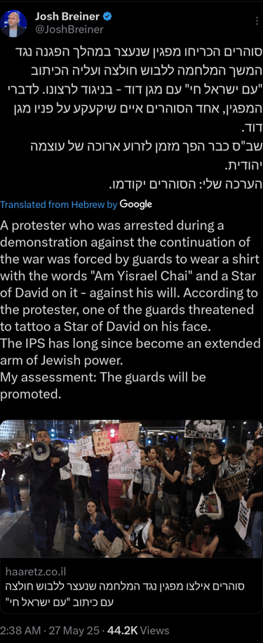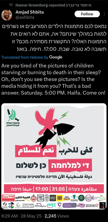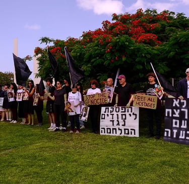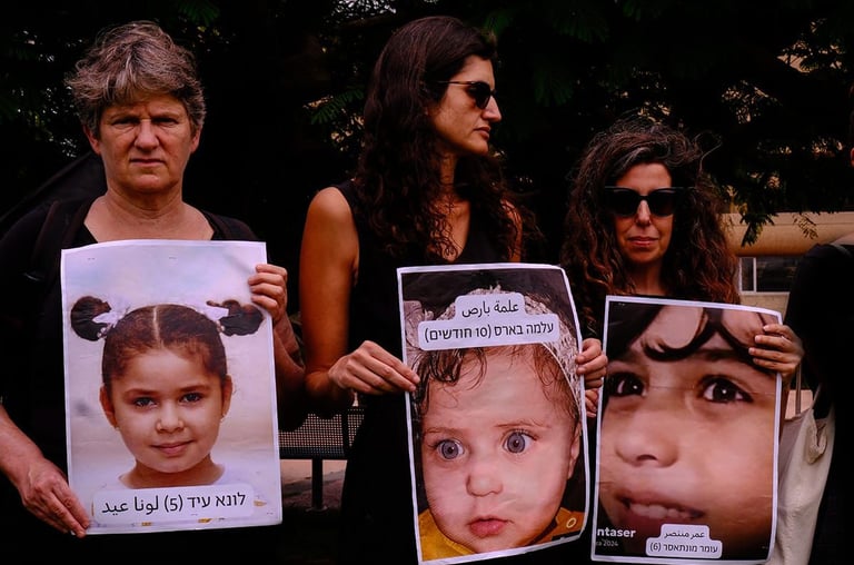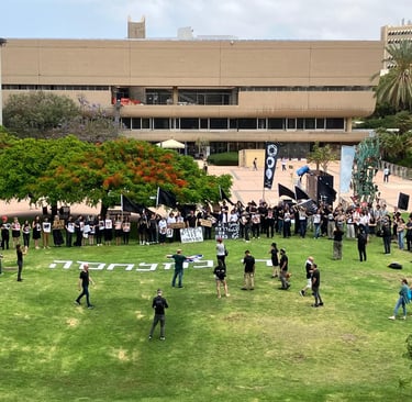 Anti-war and anti-corruption protests and demonstrations have spread throughout Israel, as activists mobilize and American contractors arrive in Gaza to distribute aid. Israeli's have sought to bring awareness of the mass suffering in gaza, bringing special attention to the children killed in gaza. mobilized activists engaged in sit-ins, silent protests at college campuses, and demonstrations outside israeli military facilities.