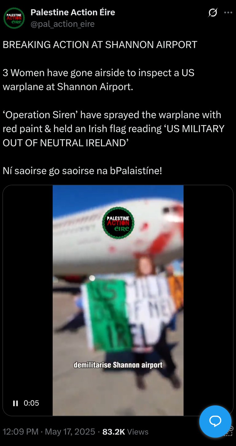 irish civilians are mobilizing to disrupt military aid, with palestine action eire activists attempting to stop a potential arms shipment to israel through an irish airport: